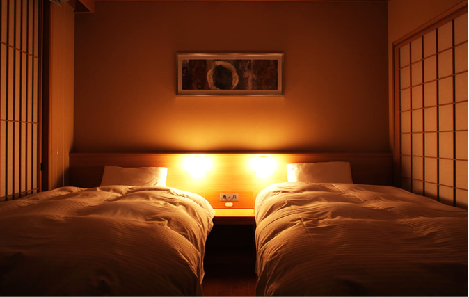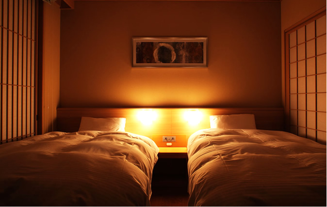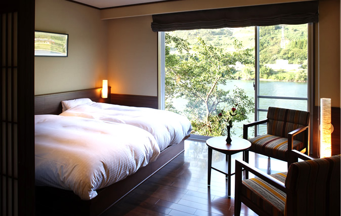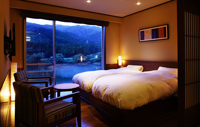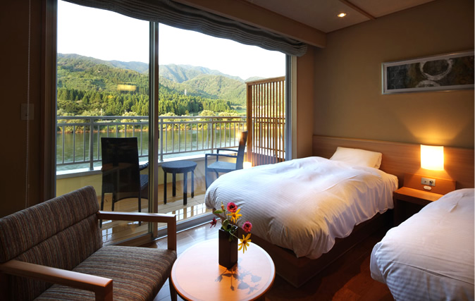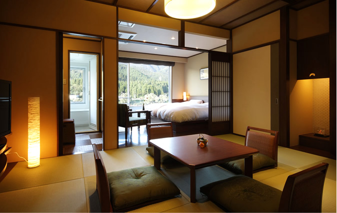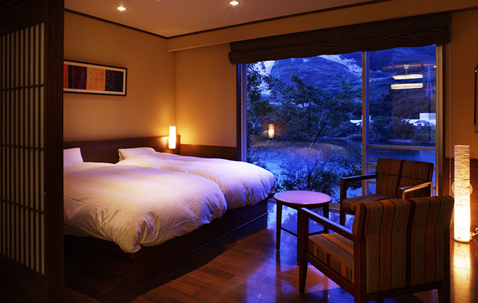 Japanese room (7.5-mat) + Western Hollywood twin bedroom + bath with view