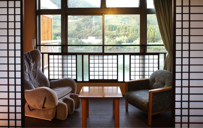Relax on the newly built deck terrace while overlooking the Agano River.