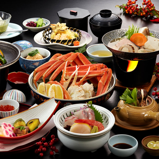 | 就餐场所 | 1楼“月AKARI”或者“大宴会场” | 晚餐时间 | 从17:30至22:30 ※如果入住时间超过17:00,请一定与本馆取得联系。 ※如果有忌口,请提前告知本馆。 |